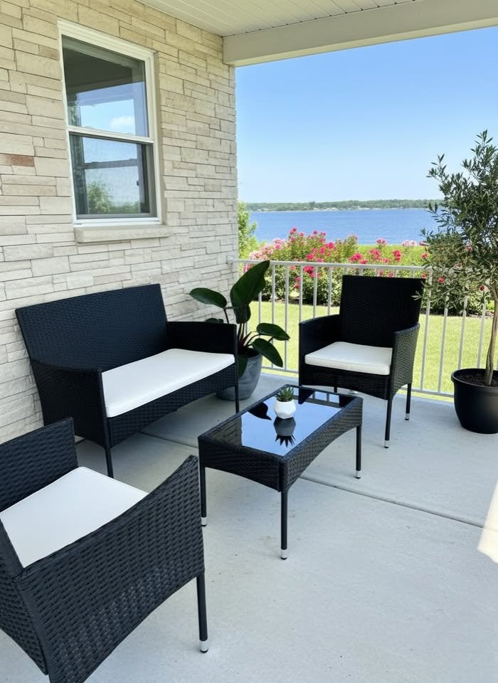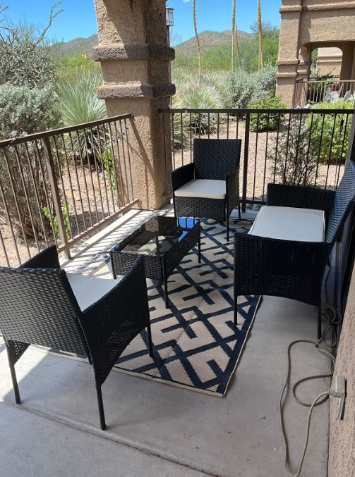 Patio Furniture Set Wicker 4 Pcs Outdoor Rattan Chair Tempered Glass Tabletop, Black