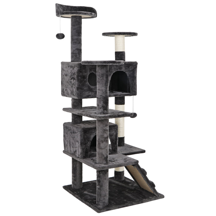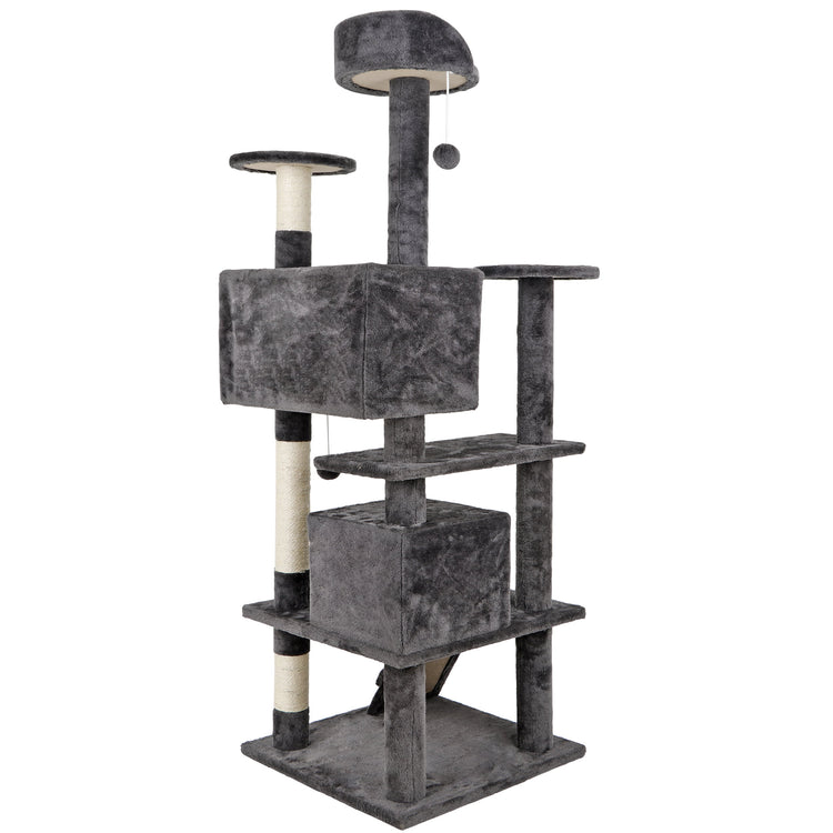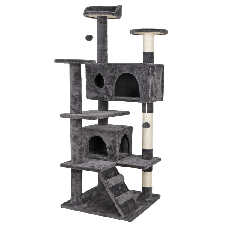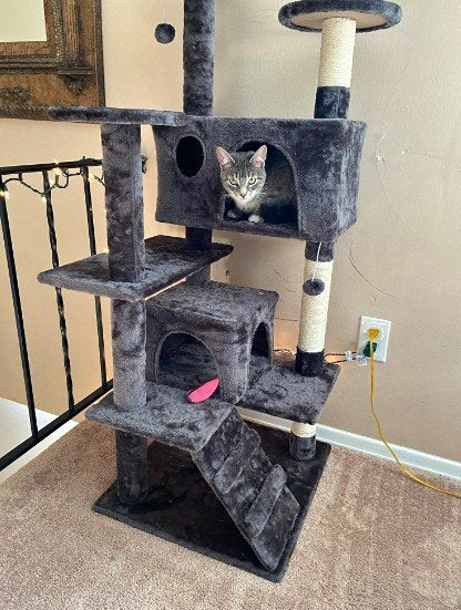💥Sale💥 53" Cat Tree Multi-Levels Condos Scratching Post Tower Play House, Dark Gray