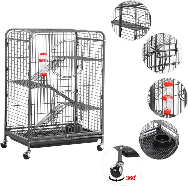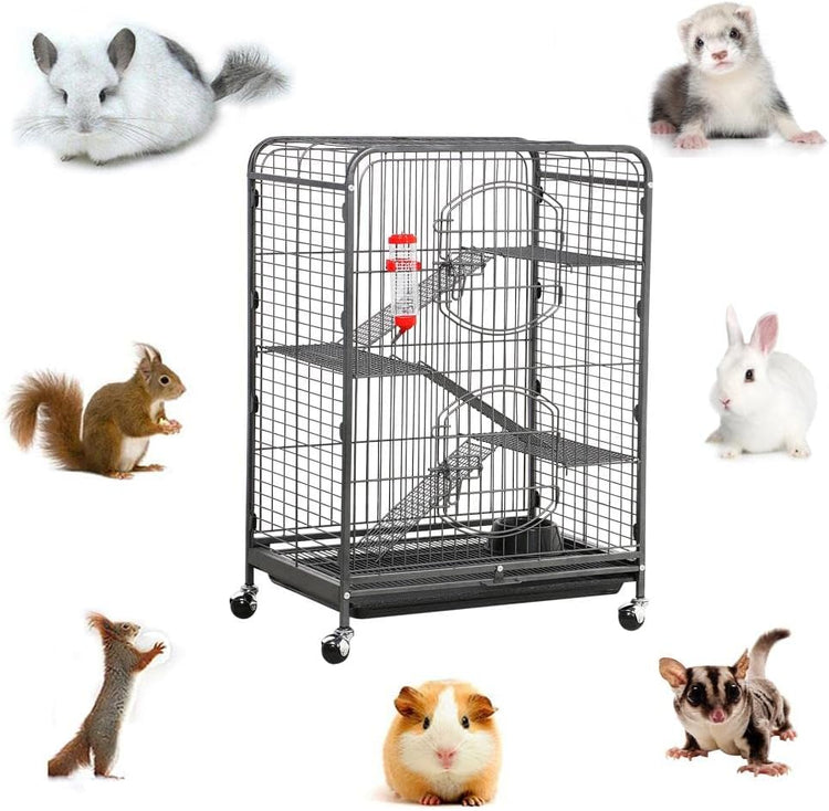 🧿【Extra large exercise space】This pet ferret cage allows several small animals to have fun at the same time; four tiers are connected with ramps, which expand the usable area for pets to climb and rest; perfect for small pets like guinea pigs, squirrels, chinchillas, ferrets, rabbits, hedgehogs, etc.