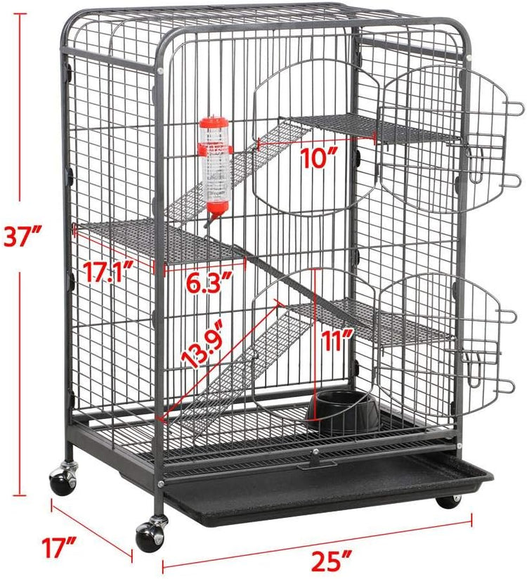 37-inch Metal Ferret Chinchilla Cage Indoor Outdoor Small Animals Hutch w/ 2 Front Doors