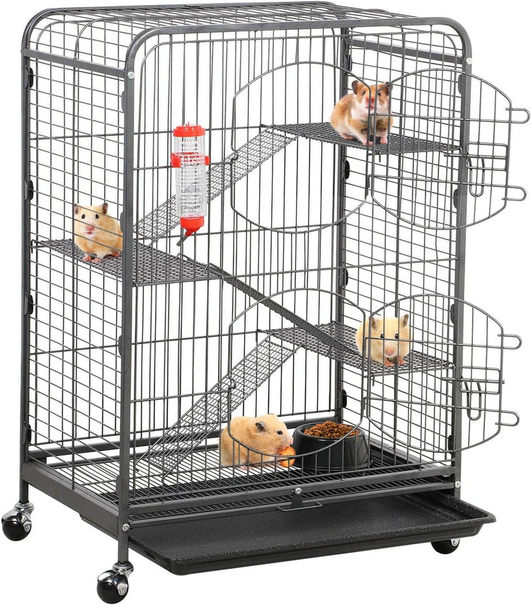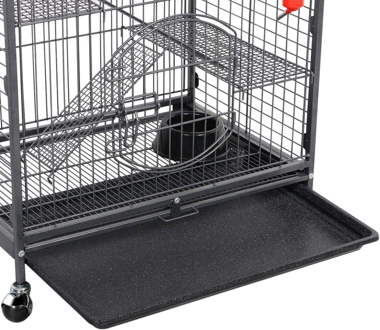 🧿【Easy cleaning】2-door design makes it easy to clean the cage and tiers with tools; a slide-out tray under the cage can be removed and cleaned with water; a metal grate between pets and the tray can avoid your pets walking/laying directly on their droppings.