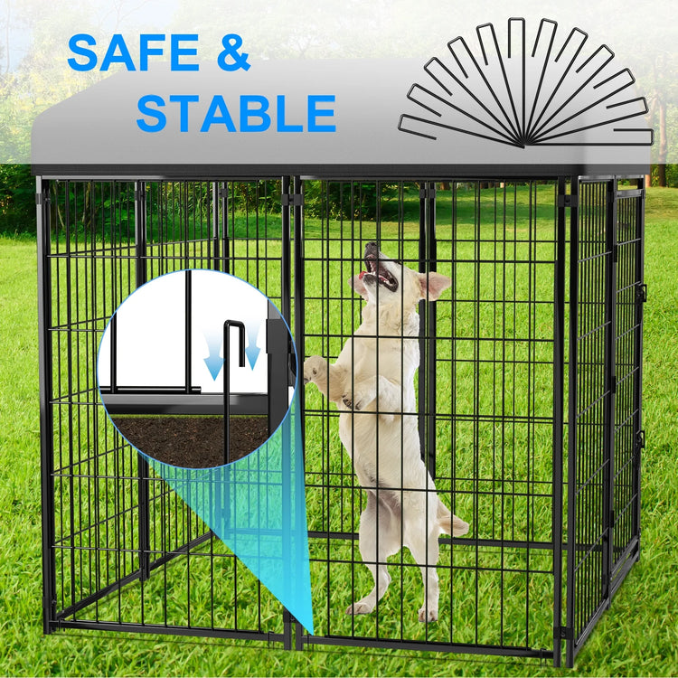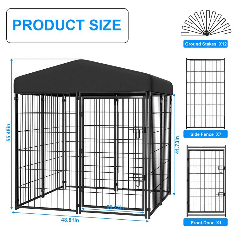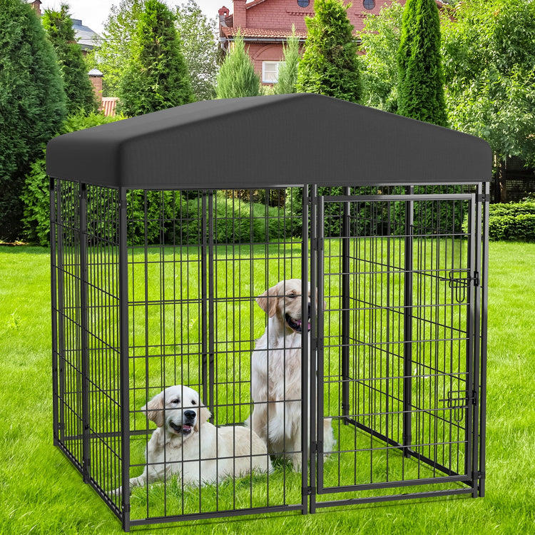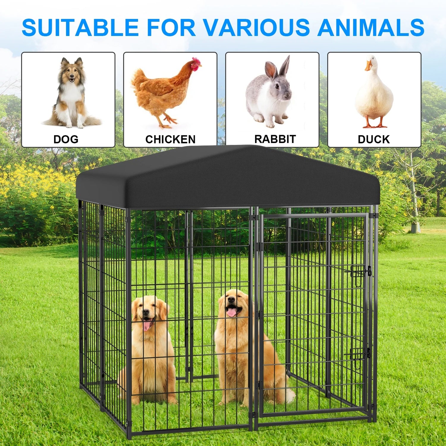 4' x 4' Large Outdoor Pet Enclosure | Heavy Duty Metal Dog Run Cage w/ Sun/Rain Cover