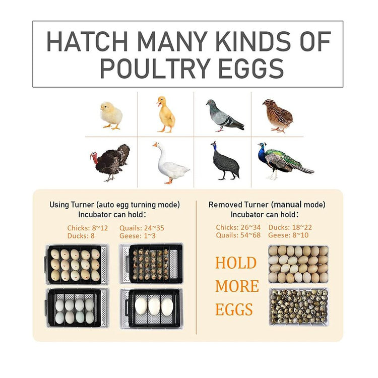 Egg Incubator with Automatic Egg Turning Can Hatch Chickens Quail Ducks Poultry Bird
