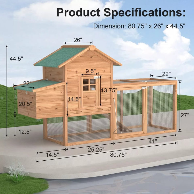 80" Chicken Coop for 2-4 Chickens Outdoor Wooden Hen House Poultry Pet Hutch