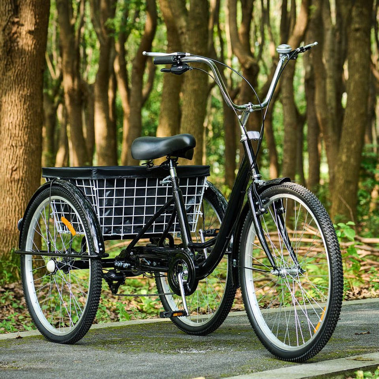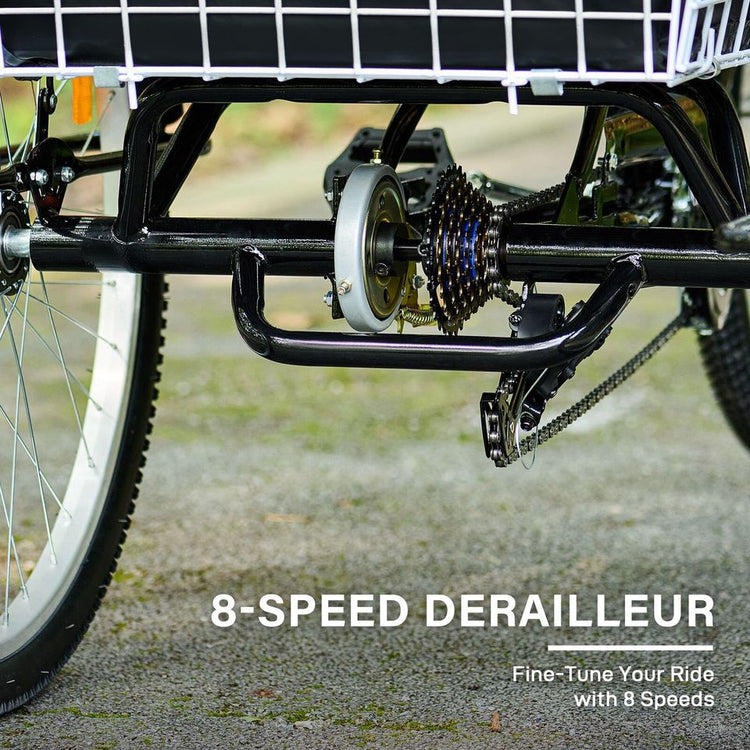 24" Adult Tricycle 8 Speed Trike 3-Wheel Cruiser Bike w/ Cargo Basket Shopping