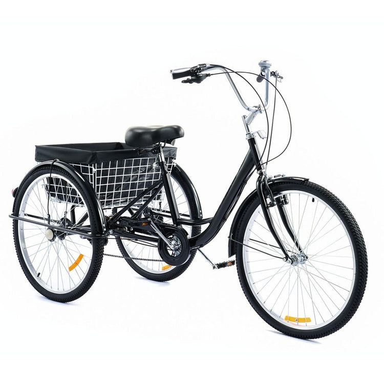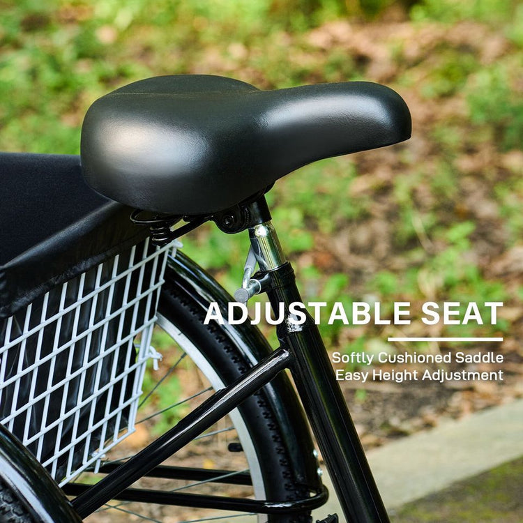 Adjustable Seat, Basket, Fenders, Lock Specification Tricycle body Color: Black Wheel