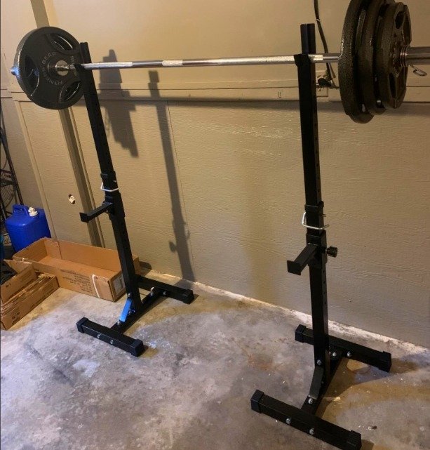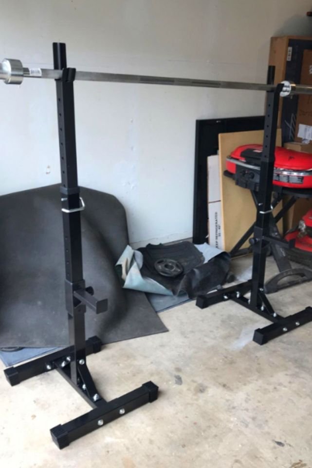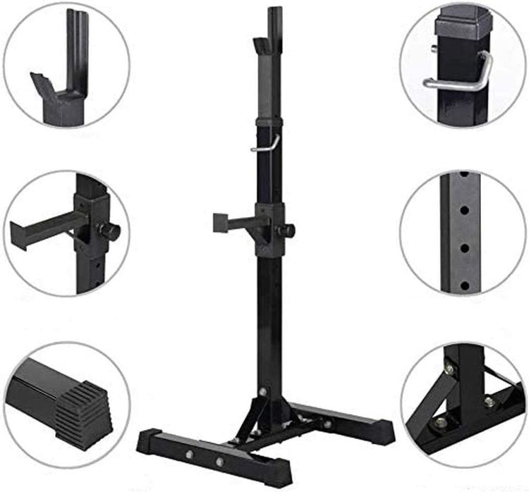 -[HIGH QUALITY]: This barbell rack is made of heavy duty 50mm steel tube frame; Max. Load 550 lb -[PRACTICAL]: Ideal for squats and bench presses - Suitable for use with both standard and Olympic sized bars.