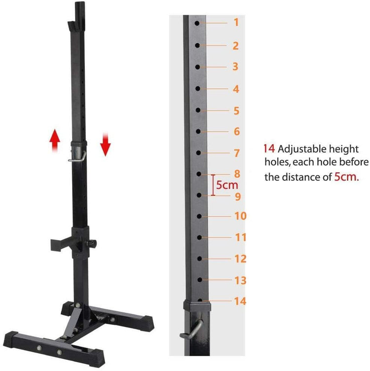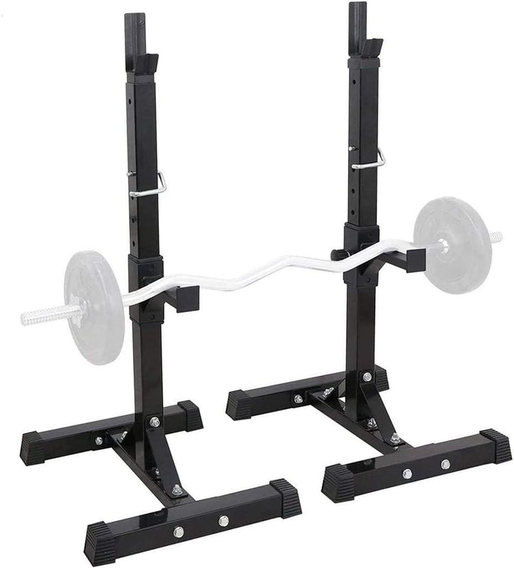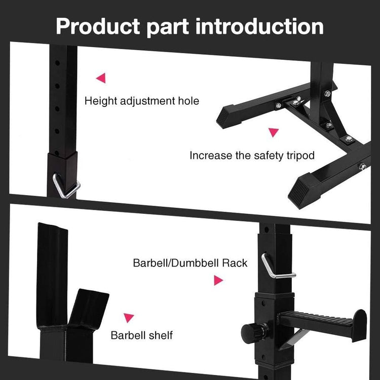 -[ADJUSTABLE]: The barbell stands have 14 adjustable safety pins on each post to help you adjust to the profit height to meet your need adjustable Height 107-162cm/42.12-63.77in -[SAFE & SECURE]: For added this adjustable squat rack safety and stability, we use high-quality metal nuts equipped with inner non-slip washers. Please use a wrench to fasten the nuts. Nuts cannot be fully tightened by hand. Adjustable Squat Rack Dipping Station Barbell Rack Dip Stand Fitness Bench Press Equipment with Barbell Plate Rack Holder for Home Gym Portable Dumbbell Max Load 550LB