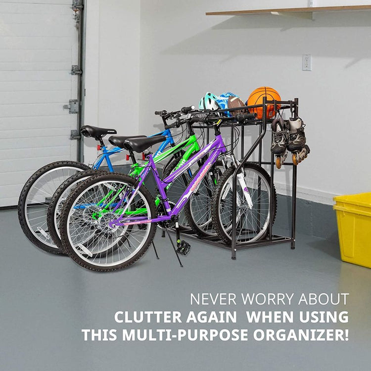 Bike Storage Rack for Garage 3 Bicycle Floor Parking Stand Free Standing Bike Rack Sports Organizer