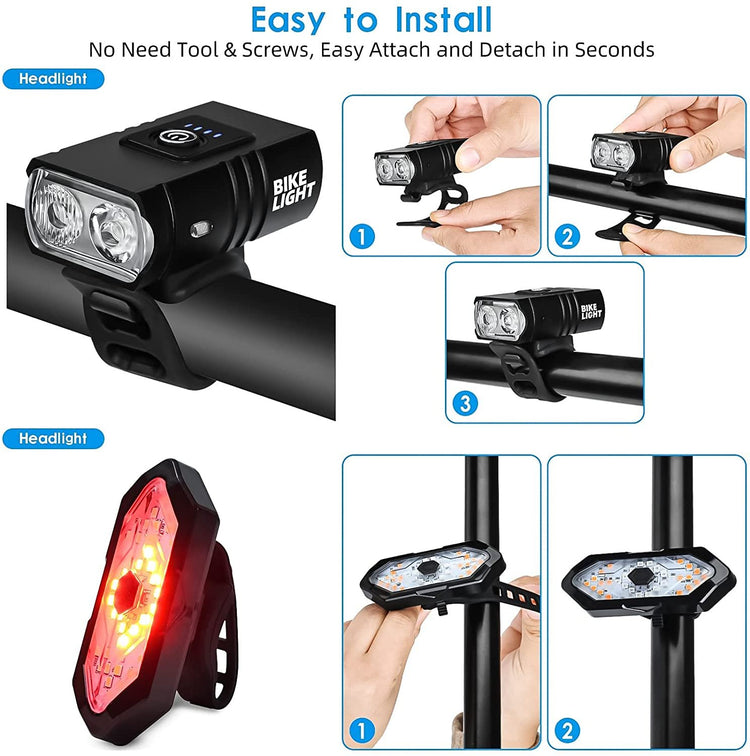 🧿⭐️【SUPER BRIGHT FRONT LIGHT & REMOTE CONTROL TAILLIGHTS】1000 Lumen wide beam from the front light can stretch out to hundreds of meters front of your wheel to provide you with the clear riding vision. The wireless remote control turns to the red tail light, accompanied by a prompt sound.