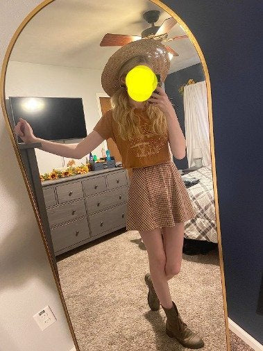 Arched Full Length Floor Mirror 64"x21" Full Body Standing Mirror, Gold