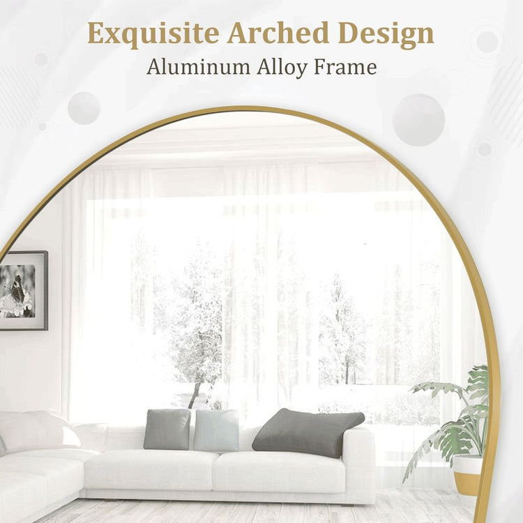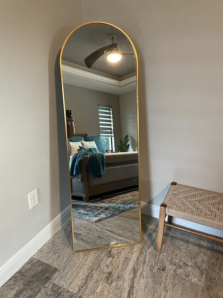 Unique Design: The top of the floor mirror is designed with a unique smooth arched-top frame, which especially attracts people's attention and highlights the beauty of the mirror. The thin aluminum alloy frame makes the mirror looks more classic and it is suitable for dressing in any room.