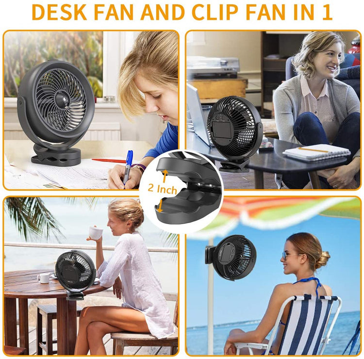 🧿【Clip Fan and Desk Fan in 1】This versatile USB fan combines the desk top with clip designs. With 2-Inch strong clamp, you will be able to fix it on any firm surface.