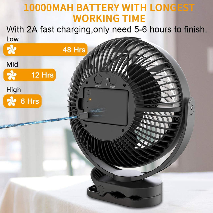 10000mAh Battery Operated Misting Fan with Clip, 8-Inch Mist Fan for Desk, Detachable Battery