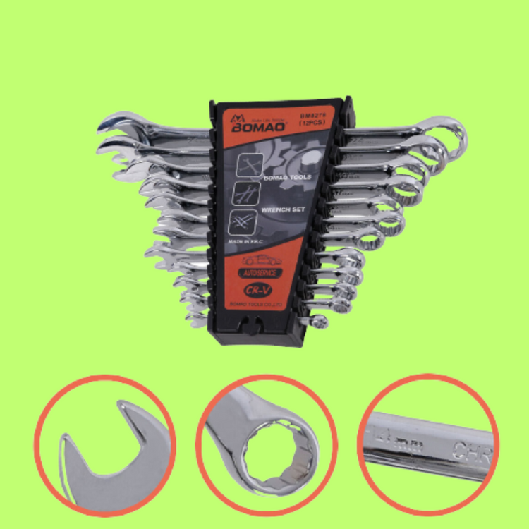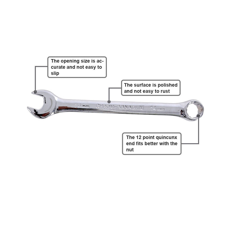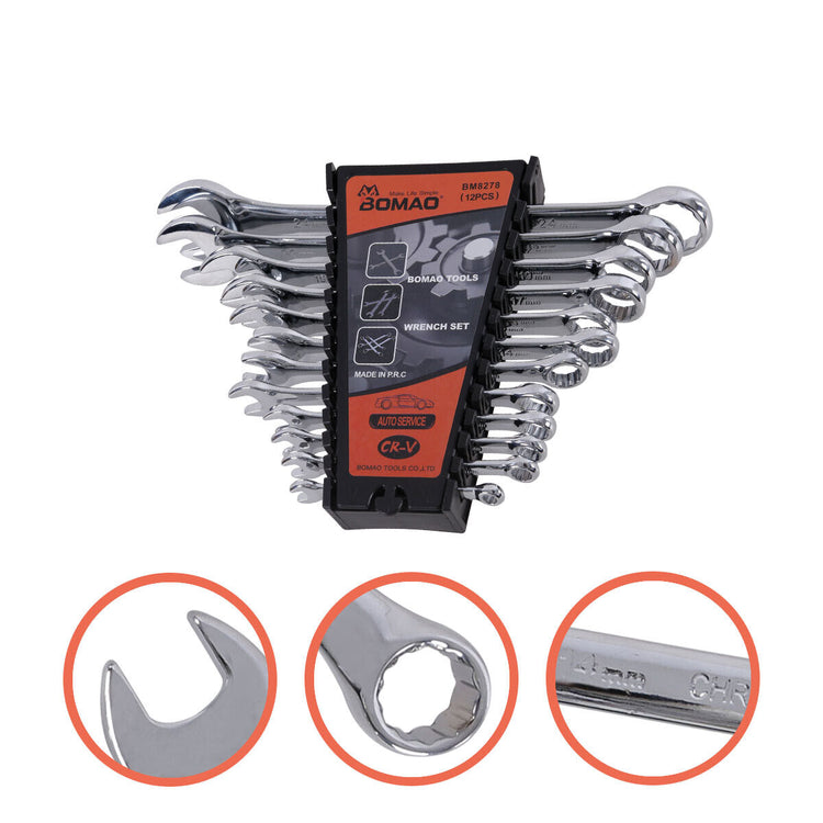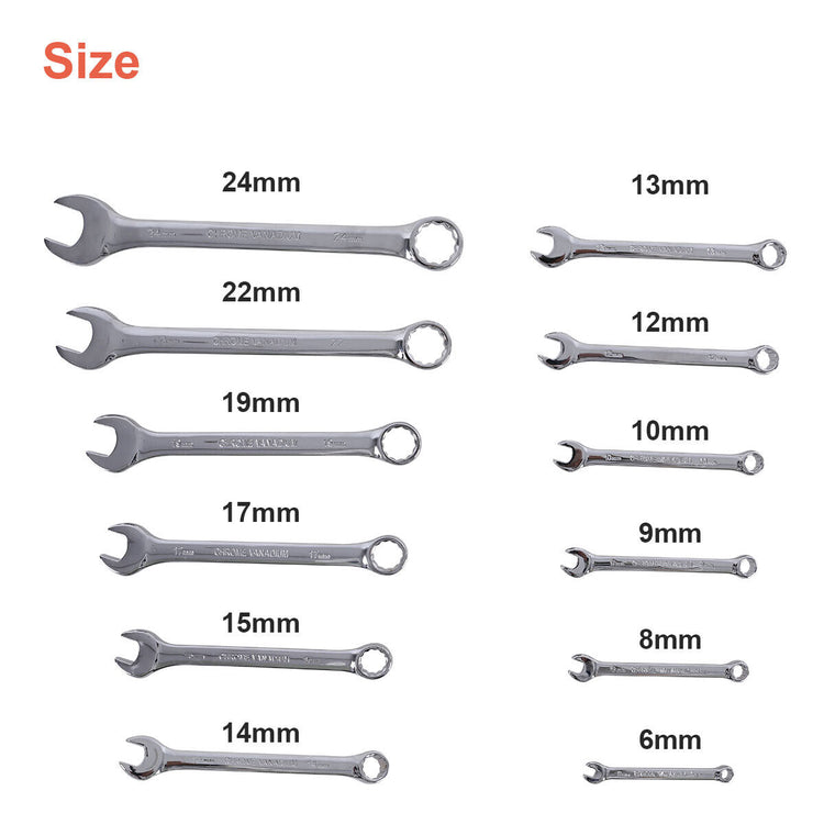 12 Piece Premium Combination Wrench Set Chrome Vanadium Steel Long 6-24mm