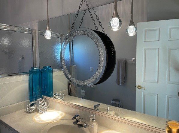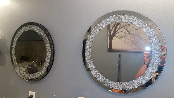 2 Pack Crystal Crush Diamond Silver Mirror 12inch Round Shape with Iron Chain