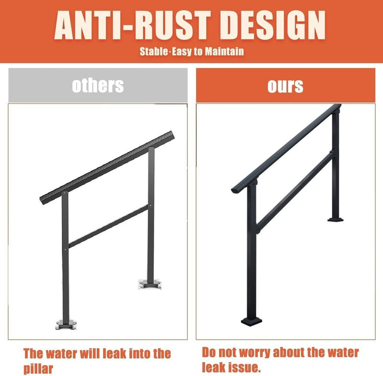 🧿【Easy to Install & DIY】- Designed to be installed yourself!Versatile & Modular Installation- Can be used as outside hand railing, outdoor handrails, stair rails, hand rails for stairways, front porch hand rail, that can be added