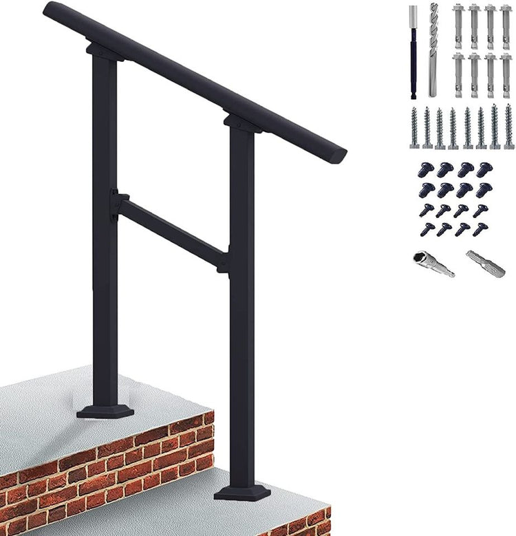 2 Steps Handrails for Outdoor Black Hand Rails Transitional