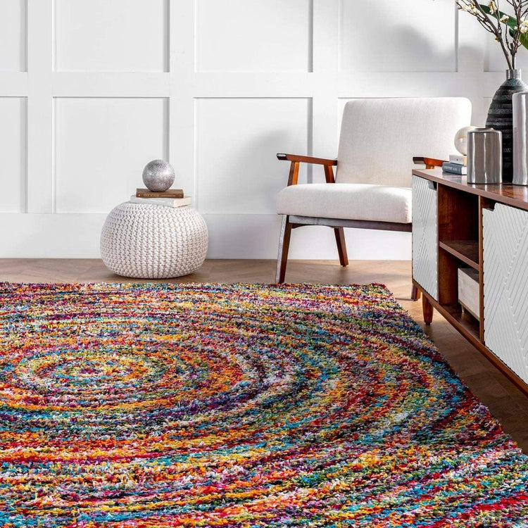 4 x 6 Feet Swirl Shag Area Rug Multicolored