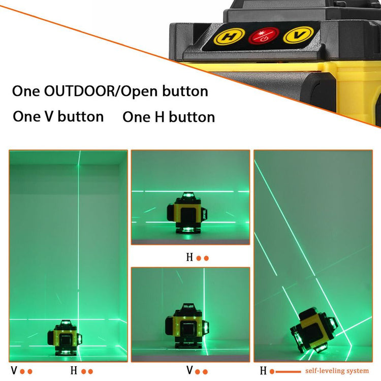 4D 16 Lines Green Laser Level Self Leveling 360° Cross Line Measure Tool M1B3