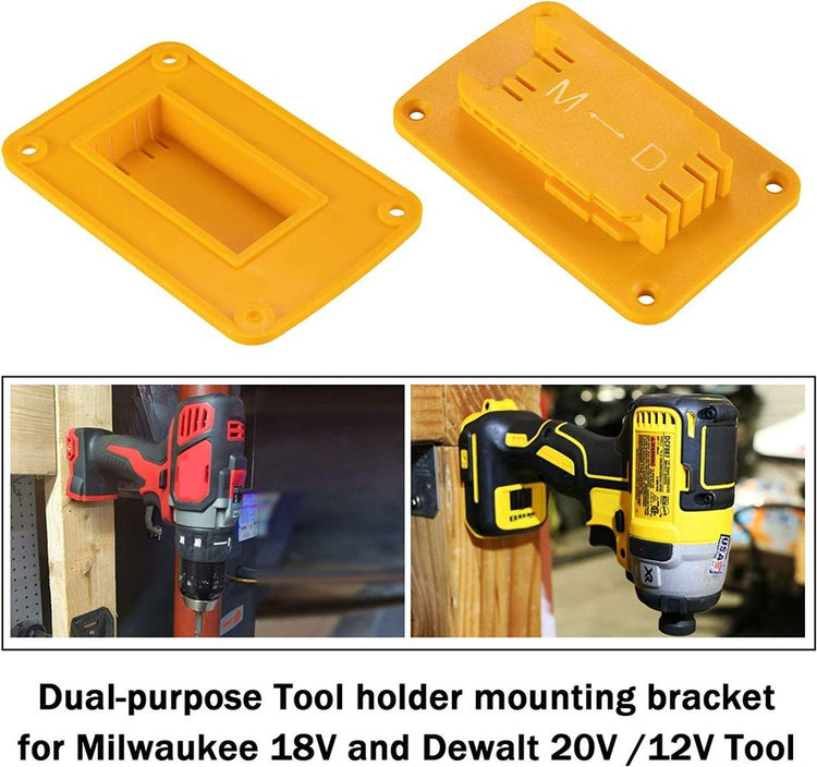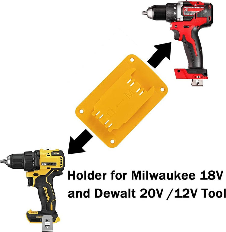 Tool holder for standard Dewalt 20V /12V tools ,for 18V Milwaukee M18 tools fastening on to wall or work bench. -Mount this holder on your wall with the 4 screw holes -Package include: 5pcs holder, 20pcs screws. -Made of high-quality ABS plastic, sturdy and durable (not 3D printed) Specifications: 1. Tool holder for standard Dewalt 20V /12V tools, for 18V Milwaukee M18 tools fastening on to wall or work bench. 2. Mount this holder on your wall with the 4 screw holes Package List: 5 pcs holder, 20 pcs screws.