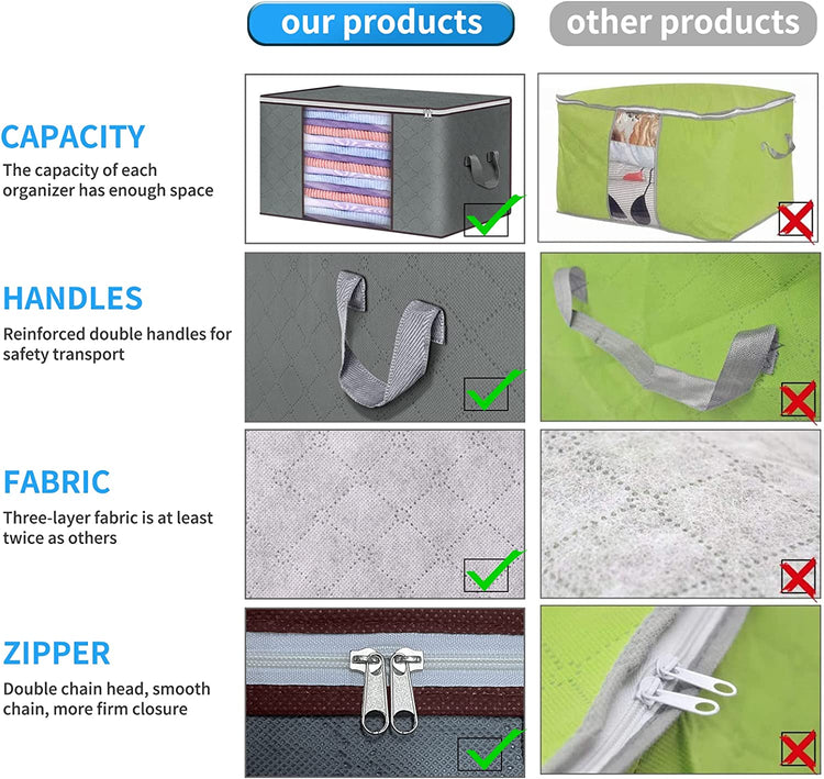 -【Large Capacity】Each storage bag measures 21.7 x 13.8 x 12.2in (55 x 35 x 31 cm). The organizer capacity is 60L. It is spacious for your comforters, blankets, pillows, plush toys, jackets or other clothes.