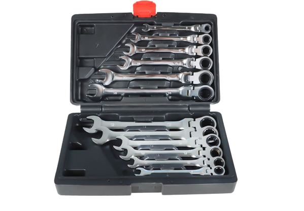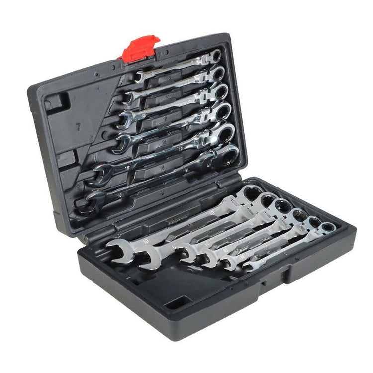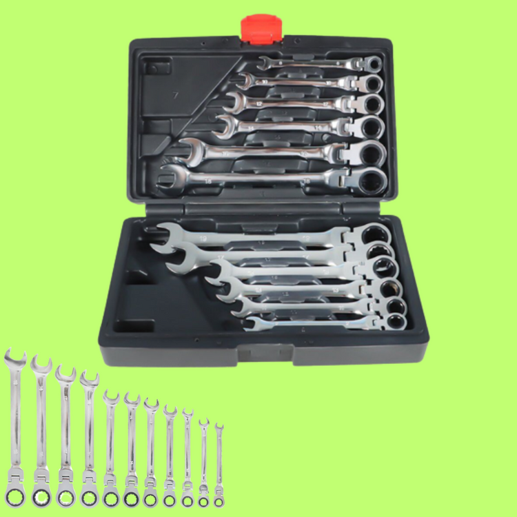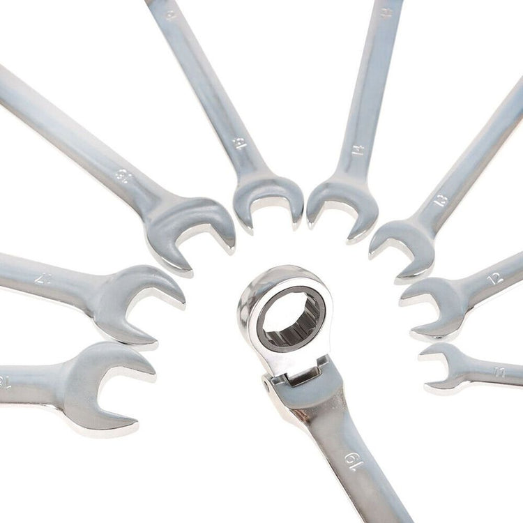 8-19mm Metric Flexible Head Ratcheting Wrench Combination Spanner Tool Set 12pc
