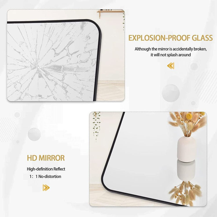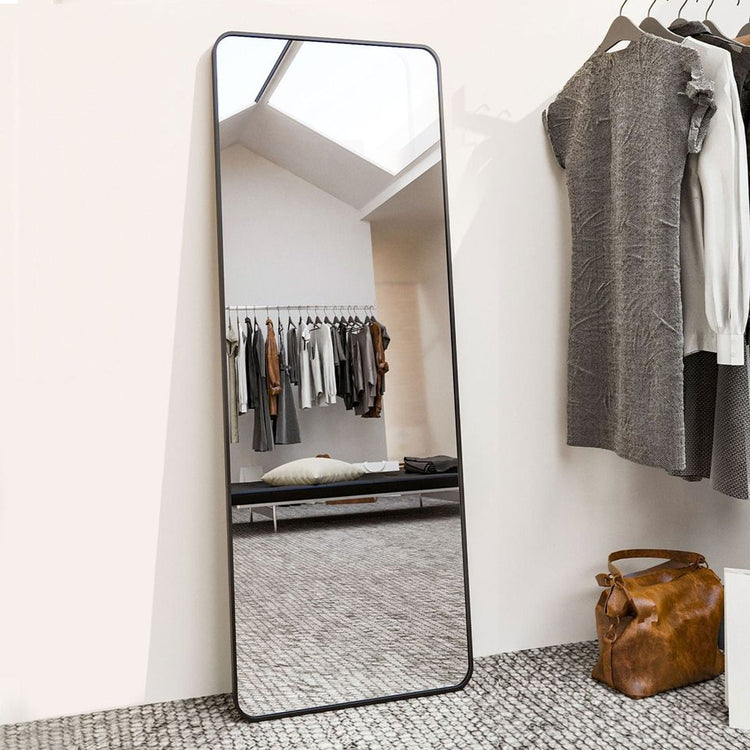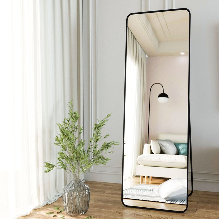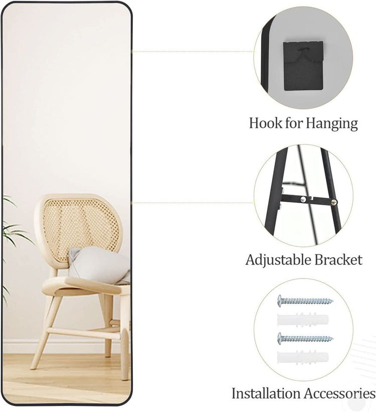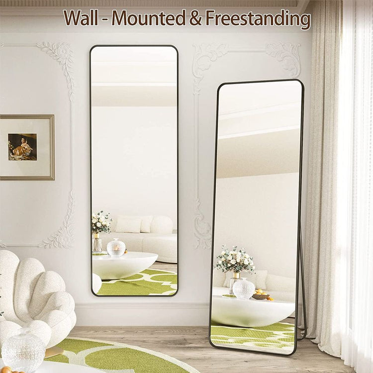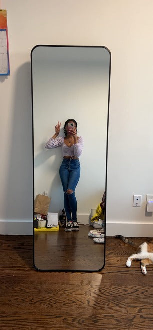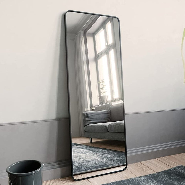 Full Length Mirror 21x64 Rectangle Floor Mirror with Rounded Corners,Black
