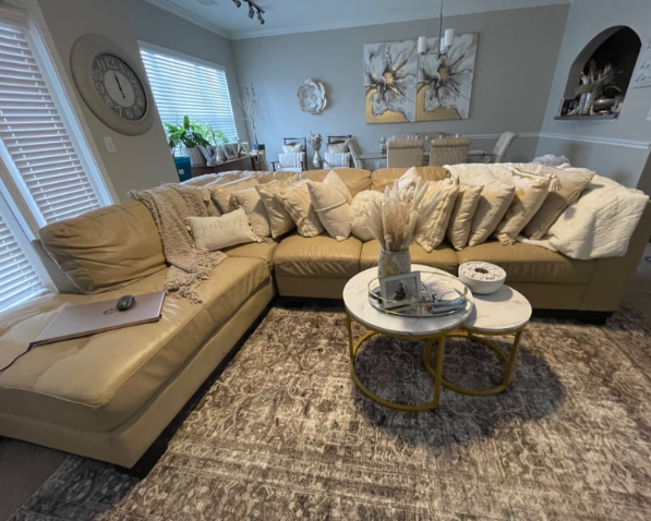 🧿 Machine-washable area rug that’s power-loomed from recycled plastic into soft, durable polyester with a thicker pile than most washable rugs