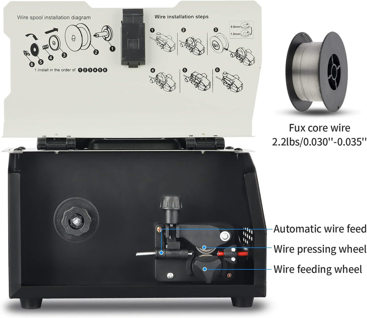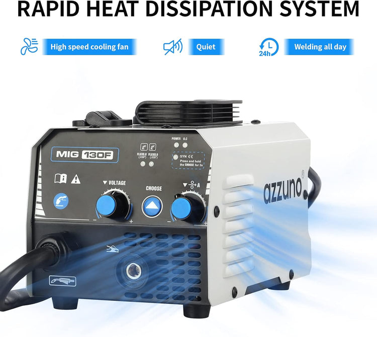 POWERFUL AND SAFE WELDER: With a capacity of 130A, this welding machine can handle mild steel plates up to 3.0mm. It features an overload and overheating protection system for added safety, and is designed to safely support 2.2-pound wire rolls.
