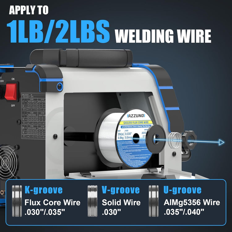 USER-FRIENDLY: This welding machine comes with a voltage control dial, wire speed adjustment, and synergic control, which automatically adjusts the voltage and wire feed speed based on amperage or material thickness. Even those new to welding can easily operate it.