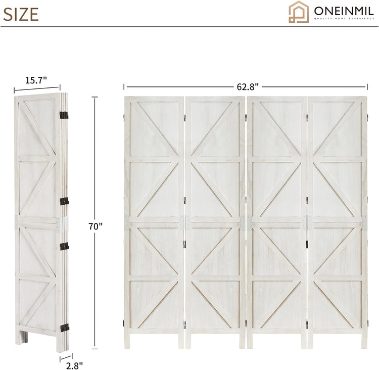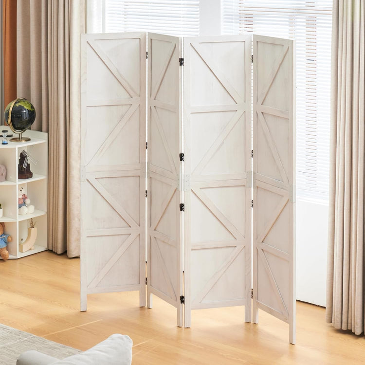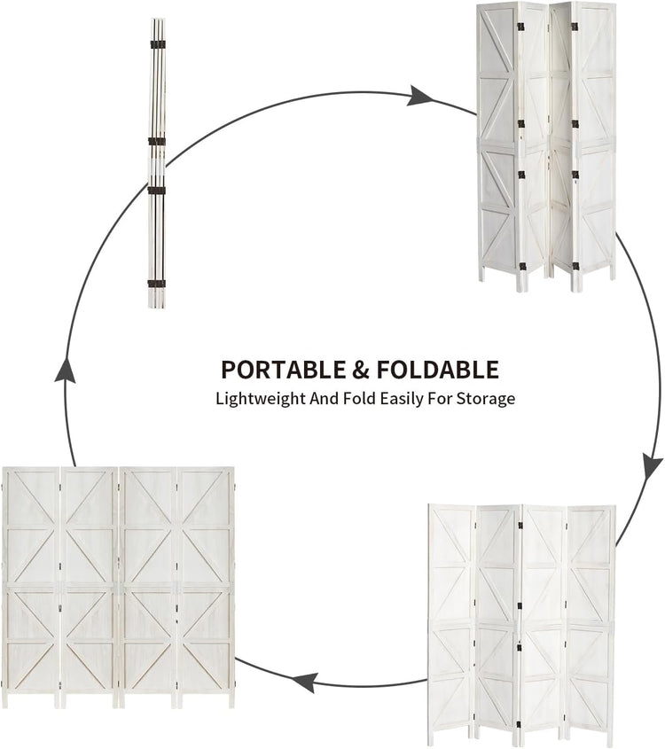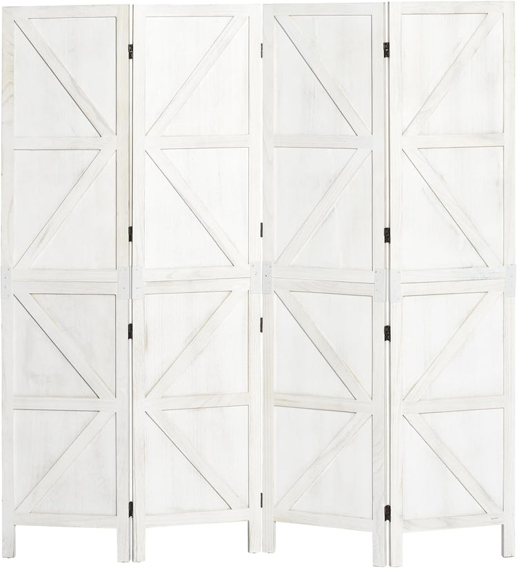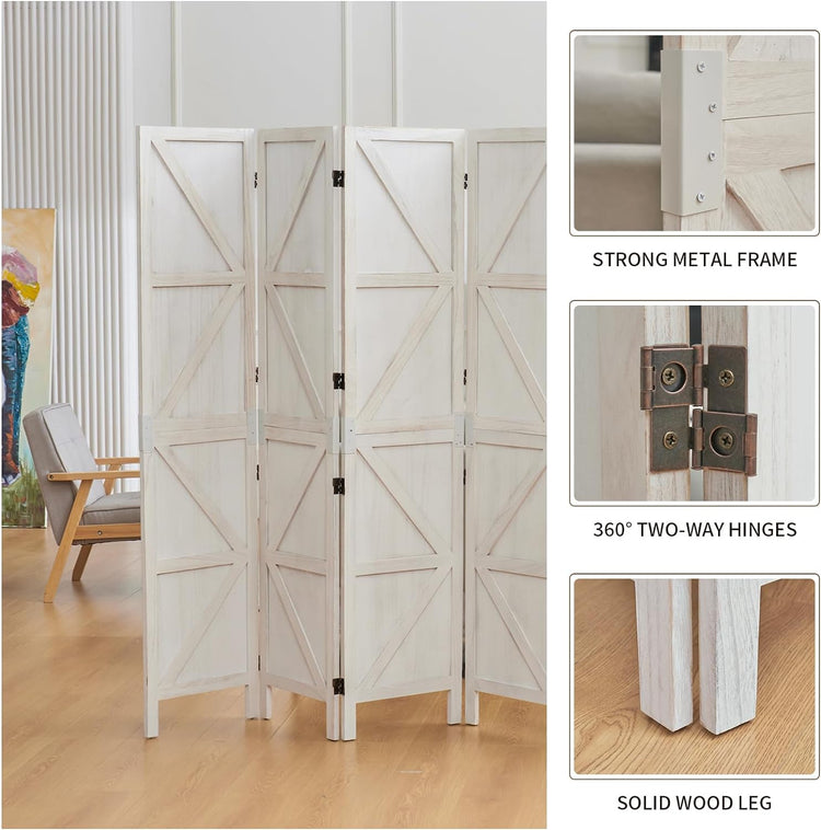 Room Divider,4 Panel Tall Folding Privacy Screens,Wood Freestanding Partition Wall Dividers, Rustic Barnwood for Room Separation, Temporary Wall,White