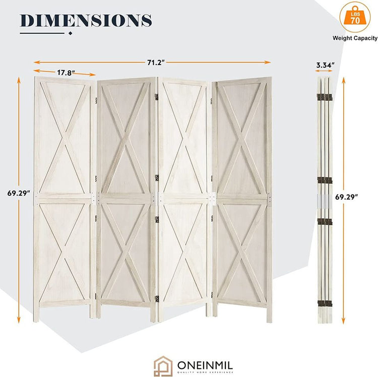 Dimensions 71"W x 69"H Color White Number Of Panels 4 Material Wood
