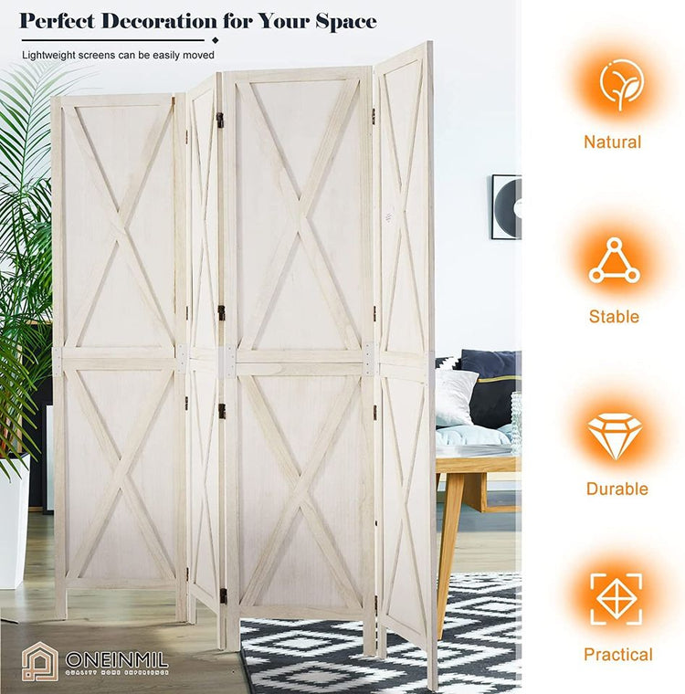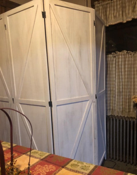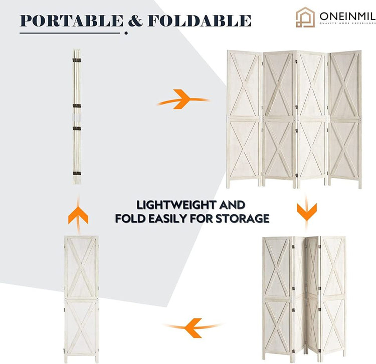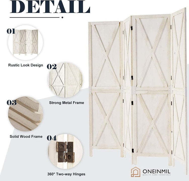 Room Divider Rustic Barnwood (White) Folding Privacy Screens Wall Partition