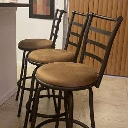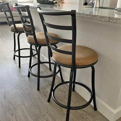 💥Sale💥Set of 3 Tan Microfiber seat Adjustable-Height Swivel Barstools | Counter Height Pub Stools