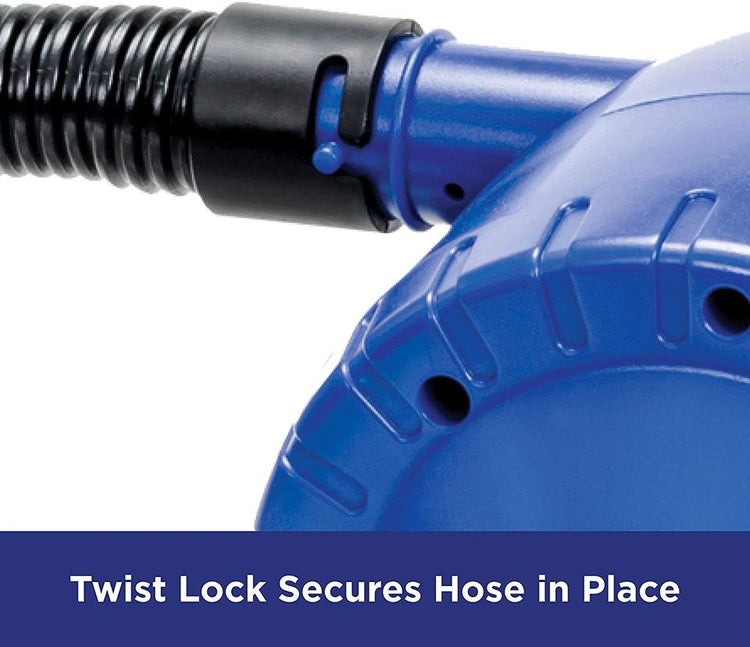 Electric pump features quick inflate and deflate design for fast and easy airflow; twist lock secures the hose for steady use