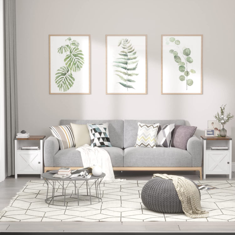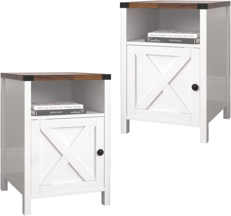 2 Pcs Farmhouse Night Stands, Wooden End Table with X Barn Door and Open Shelf, Bedside Tables
