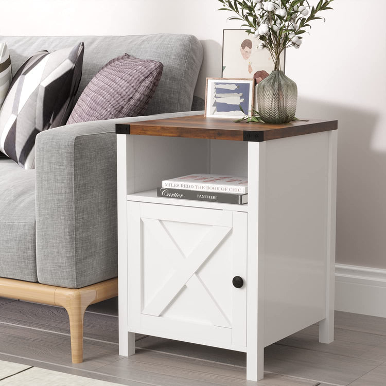 - 【End Table with Barn Door】: The farmhouse nightstand with wood barn door perfectly restores the farmhouse style. The end table with X design barn door highlights rustic and elegant decor. With the industrial end table striking rustic color, this tall side table brings charm to all cozy rooms. The strong wood legs of the nightstand out the look for endless elegance.