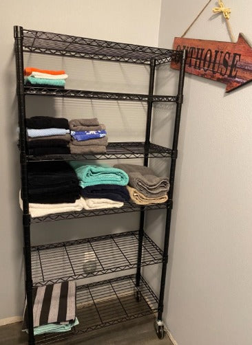 Durable Material: Made of carbon steel with baked enamel finishes, heavy duty and anti-rust, can hold big appliances like microwave, toaster and baker. Large Space: 5-tier shelves provide large space for you to organize your kitchenware,keep things in order. Adjustable Height: