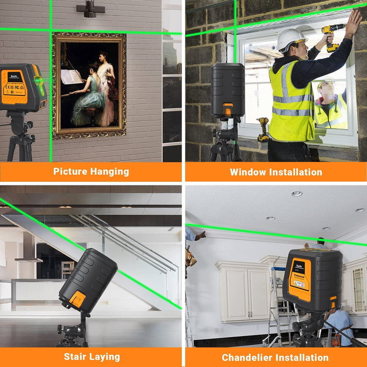 🧿【High Precision and Visibility】- Sends super bright green beam for ±3mm/10m accuracy, provides a working distance of up to 100ft; the green beam is twice brighter than a red beam, it also can extend to 197ft with a laser detector to fit outdoors perfectly