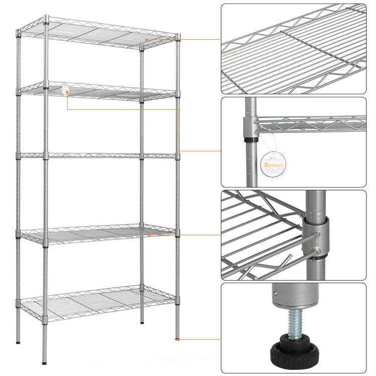 550 lb Capacity 59" Adjustable Shelves 5 Tier Wire Shelving Unit Metal Storage Rack