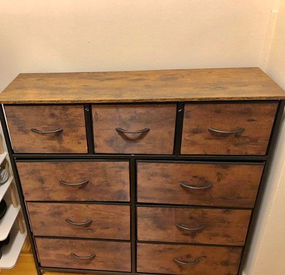 - Roomy Storage Space: The 9 foldable deep drawers are so spacious that they provide endless organizational possibilities. Wooden top is great for lamps, clocks, glasses and other daily essentials, keeping them in your reach.