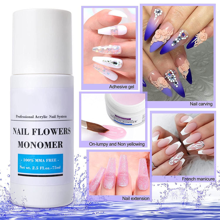 - Acrylic Nail Set - This glitter acrylic nail kit includes 3 basic acrylic powder, 75ml acrylic liquid monomer as well as other manicure tools