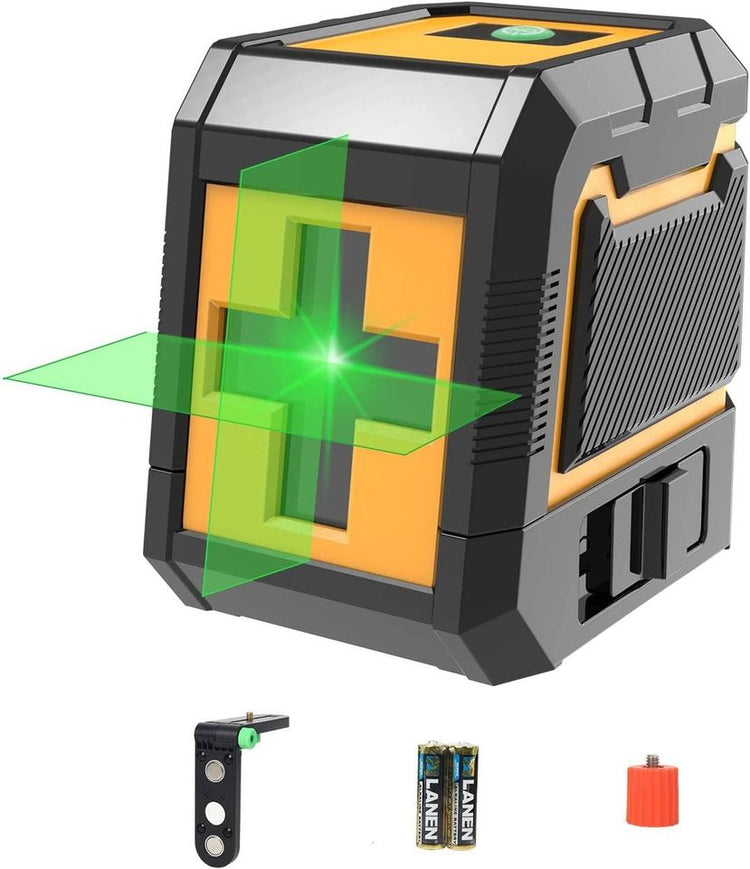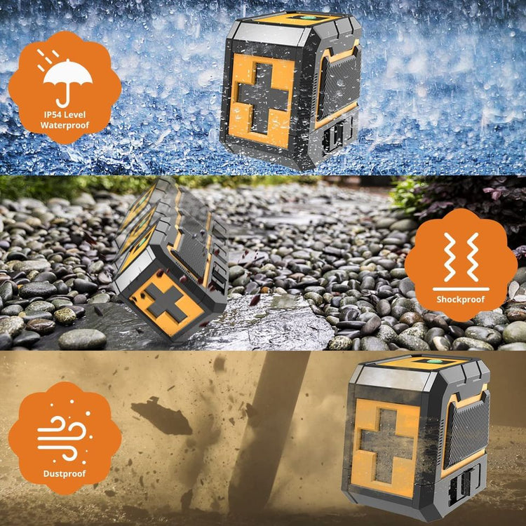 Equipped with 2*AA batteries, the working time could reach up to 8 hours, you can replace the batteries at anytime. Very convenient. The L-shape magnetic wall bracket included can easily and stably mount the laser level to steel.