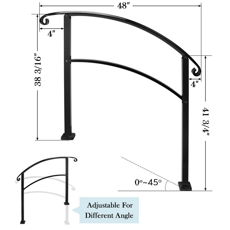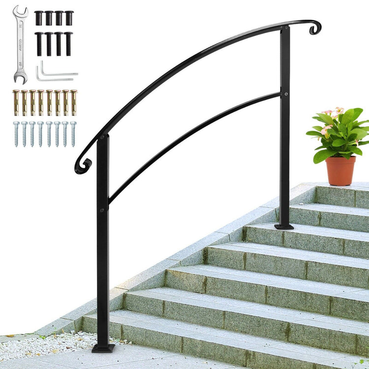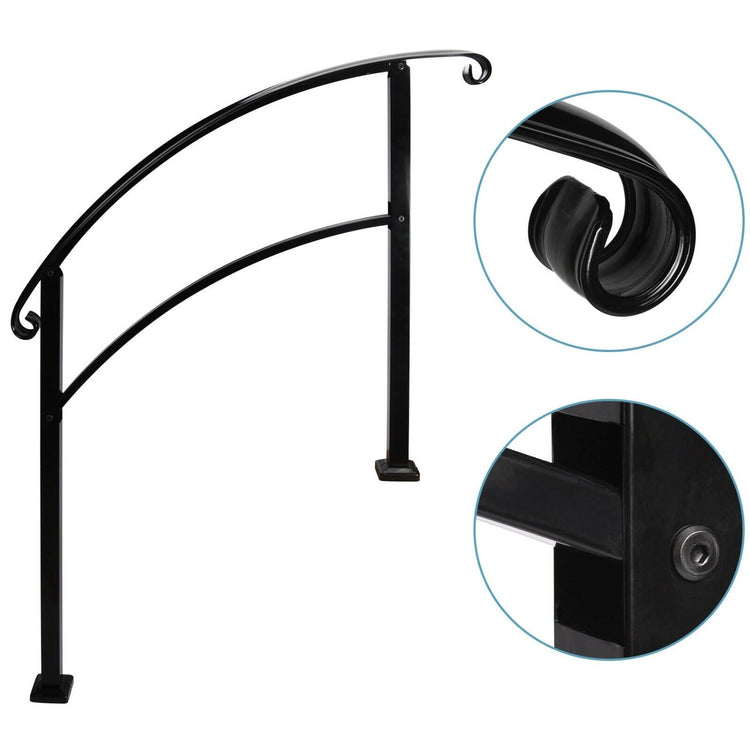 Iron Handrail for 5 Steps Stair Railing Hand Rail Kit Fit Black Outdoor Deck
