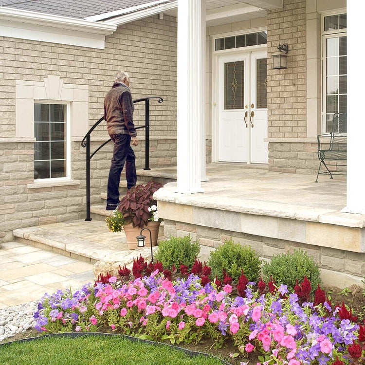 The stair railing kit is made of wrought iron , durable, rust proof, the connection of handrail is welded firmly. Provide a friendly design for the elderly, children, disabled members, and people after surgery.