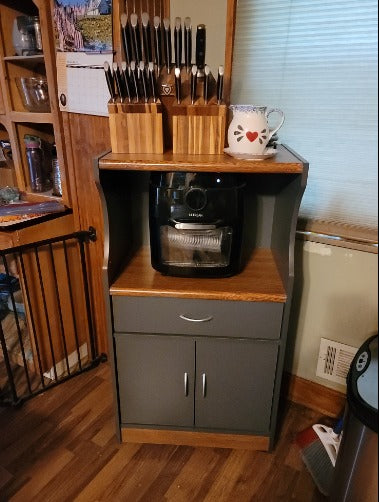 Microwave Cart with One Drawer, Two Doors, and Shelf for Storage, Grey-Oak