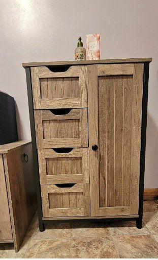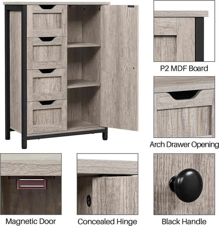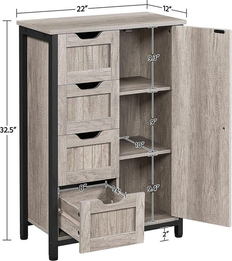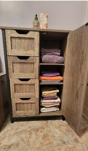 NEW Industrial Bathroom Floor Cabinet, Freestanding Wooden Storage, Grey