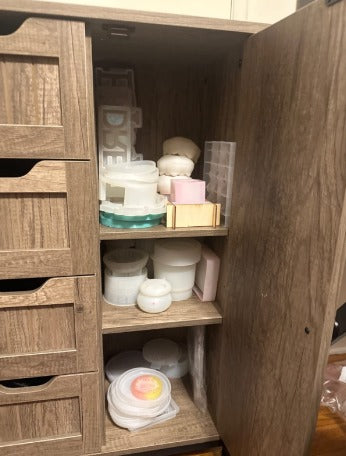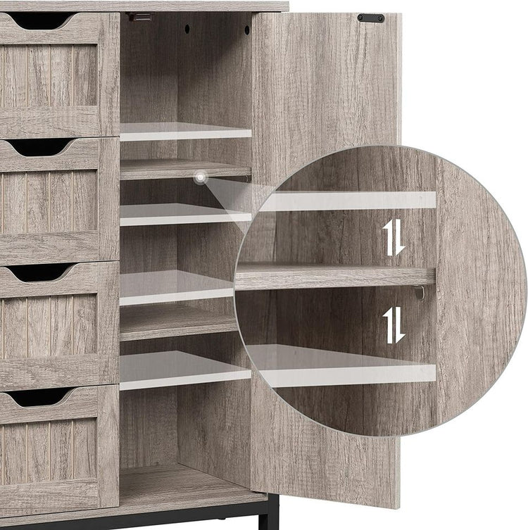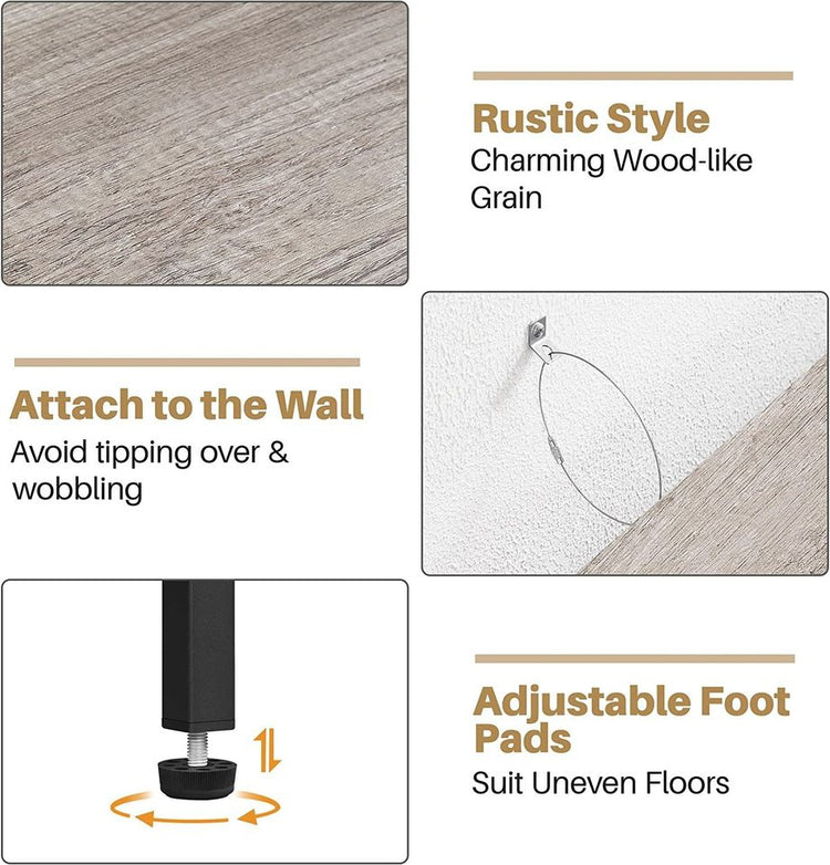 【Adjustable Shelf Height】 The two inner cupboard shelves can be easily adjusted up, down, or out in 3 heights (upper shelf:6.6″; 9.3″; 11.6″; lower shelf: 7″; 9.4″; 12″ ) for a cabinet space customized to your needs.