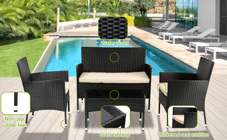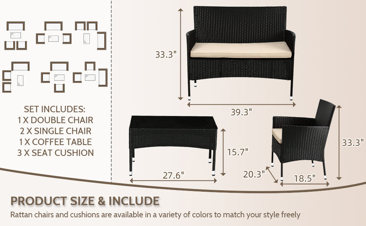 Patio Furniture Set 4 Pieces Outdoor Rattan Chair Wicker
